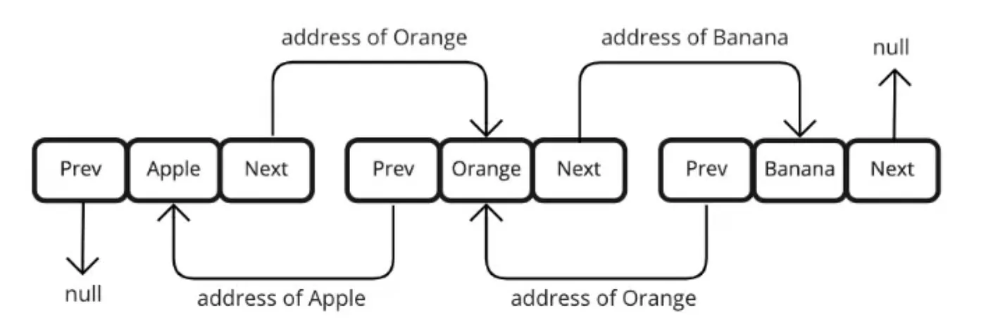우리가 아는 이중 연결 리스트(doubly linked list) 구조