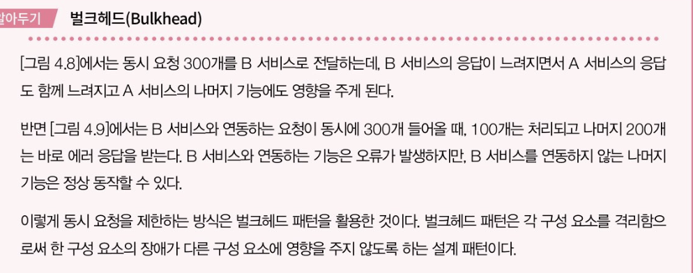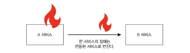 책의 사례에서는 A은행이 가입 과정에서 필요한 정보 인증을 위해 외부 서비스를 호출했는데, 외부 서비스가 몰려드는 트래픽을 감당하지 못하면서 장애가 발생했다. 이렇게 외부 서비스의 장애에 의해 우리 서비스가 영향을 받게 되고, 만약 서비스 간 연동이 많아질수록 연동 시스템의 품질을 신경써야 한다.