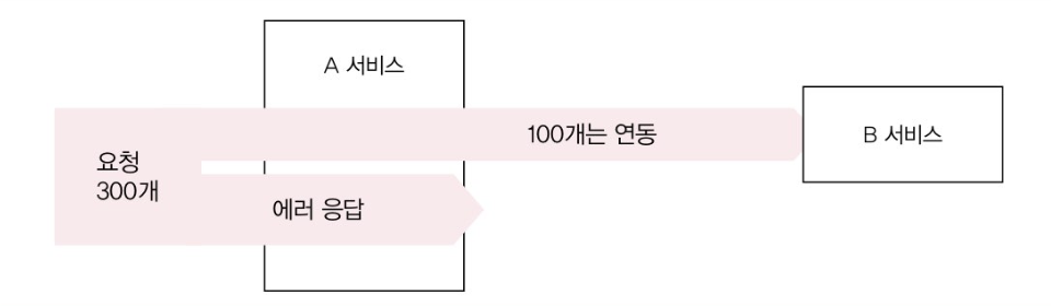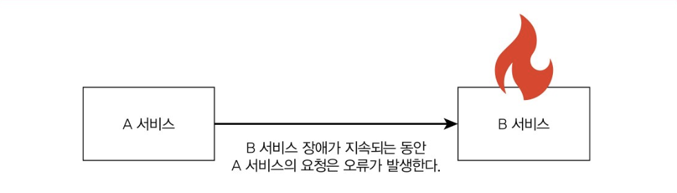 위 그림처럼 서비스 B가 제대로 된 요청을 처리하지 못할 때는, A 서비스가 요청을 보내지 않고 바로 에러를 응답하는 것이 더 낫다. 이렇게 하면 B 서비스가 A 서비스에 주는 영향(응답 시간 증가, 처리량 감소 등)을 줄일 수 있다. 당연히 이전에 말했던 것처럼 사용자 입장에서도 그 편이 더 낫다.