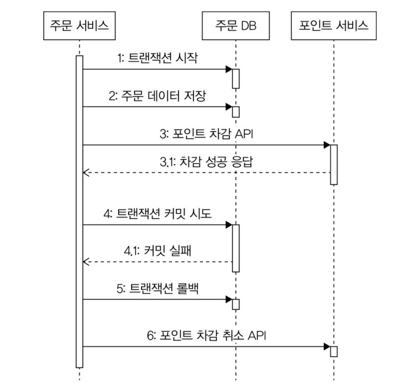근데 여기서 궁금한건 일정 시간 후에 이전 호출에 대한 성공, 실패 여부를 확인하는 API를 호출하는건데, 트랜잭션을 지속하거나 롤백한다는 건 트랜잭션을 계속 열어둔다는 의미다. 근데 이러면 그 일정 시간동안 커넥션을 잡아먹고 있는게 아닌가? 하는 생각이 듦