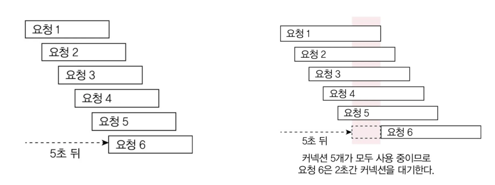 - 커넥션 풀은 무한대가 아니기 때문에 트래픽이 많으면 포화될 수 있다.