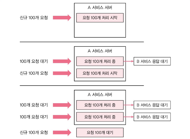 연동 서비스가 한번에 처리할 수 있는 요청이 100개인데, 요청 300개를 보낸다면?