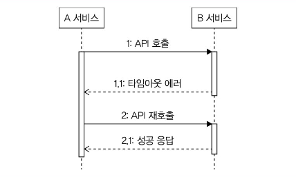 재시도를 통해 성공 가능성을 높일 수 있지만, 반대로 연동 서비스에 더 큰 부하를 줄 수 있다. 연동 서비스가 성능이 느려져서 읽기 타임아웃이 발생한 상황인데 계속 재시도로 요청을 보낸다? → 당연히 연동 서비스에 부하가 더해지고, 연동 서비스 보고 죽으라는 소리다.