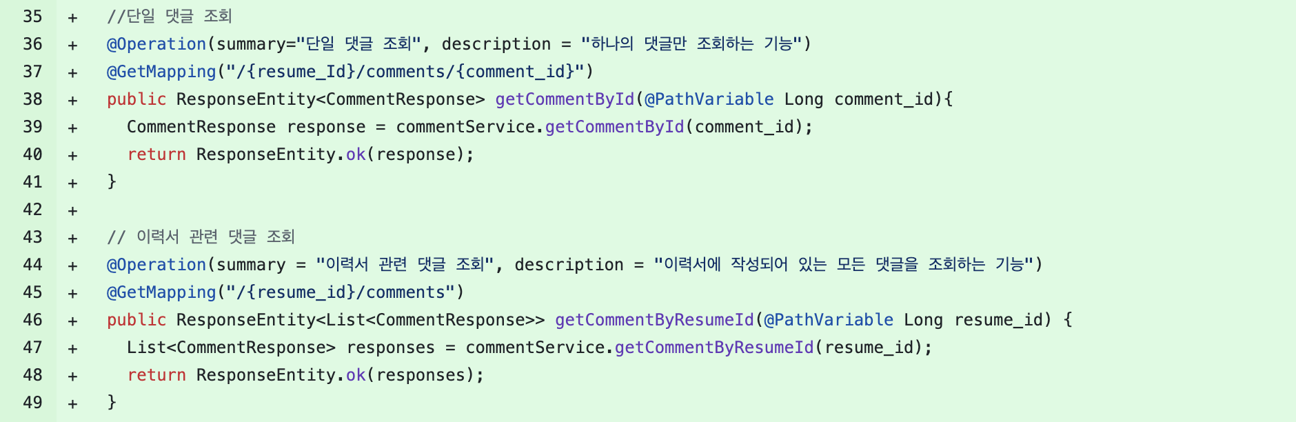 나는 공백도 컨벤션이라는 말과 공백을 의미있게 활용하라는 점이 가장 참신했다. 내가 코드를 짤 때는 자동으로 enter를 치면 indent blank size가 결정되어 있었기 때문에 공백도 컨벤션이라는 생각을 해보지 못했다. 하지만 이 글을 보고 내가 진행하고 있는 프로젝트에서 팀원으로부터 다음과 같은 pr을 받게 되었는데, 공백이 컨벤션이고 공백라인을 의미있기 활용하라는 것이 왜 필요한 지 이해할 수 있었다